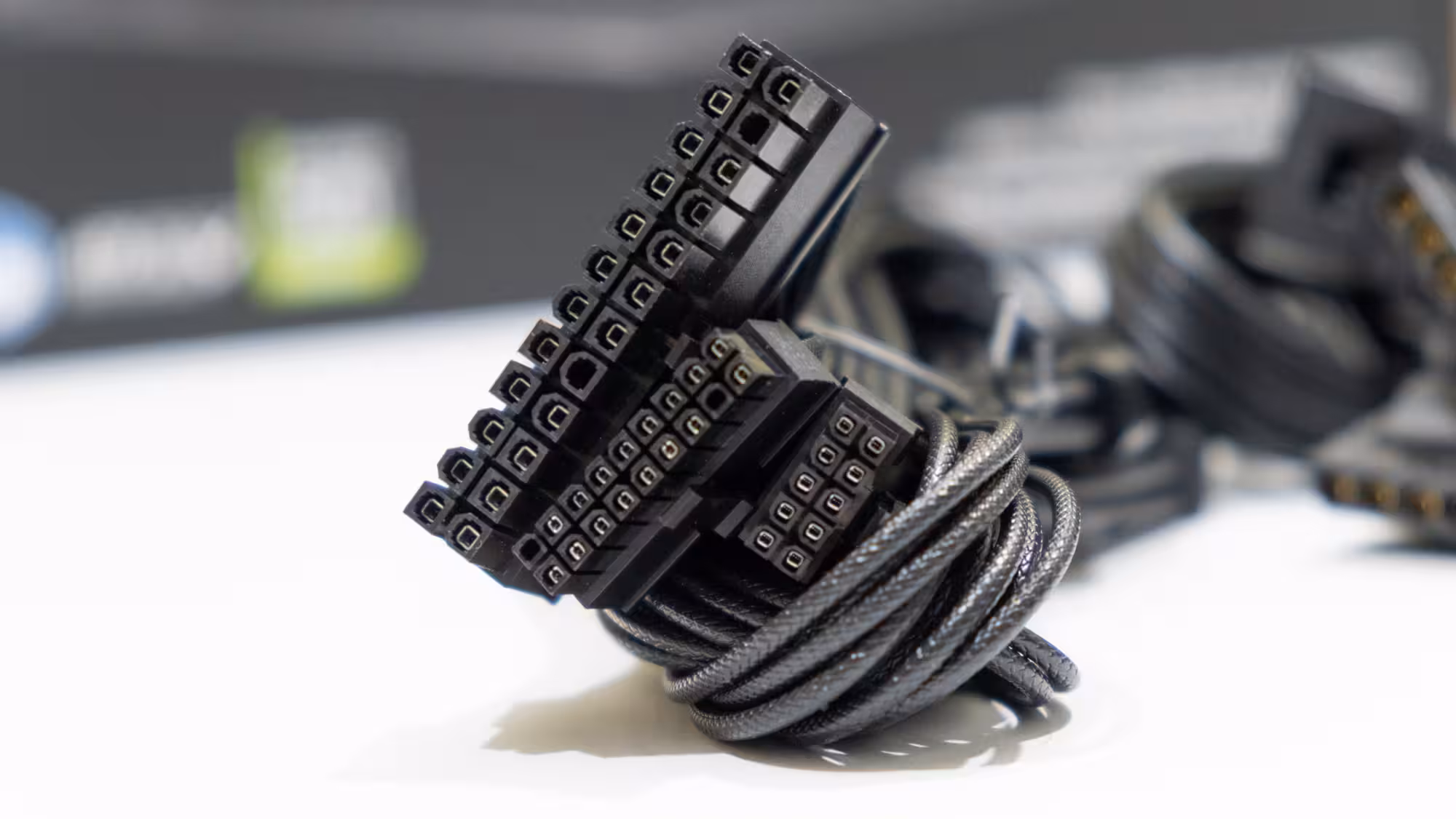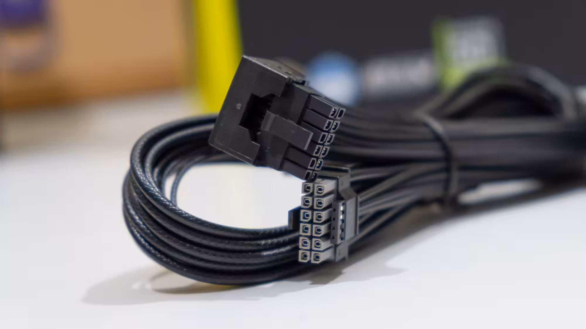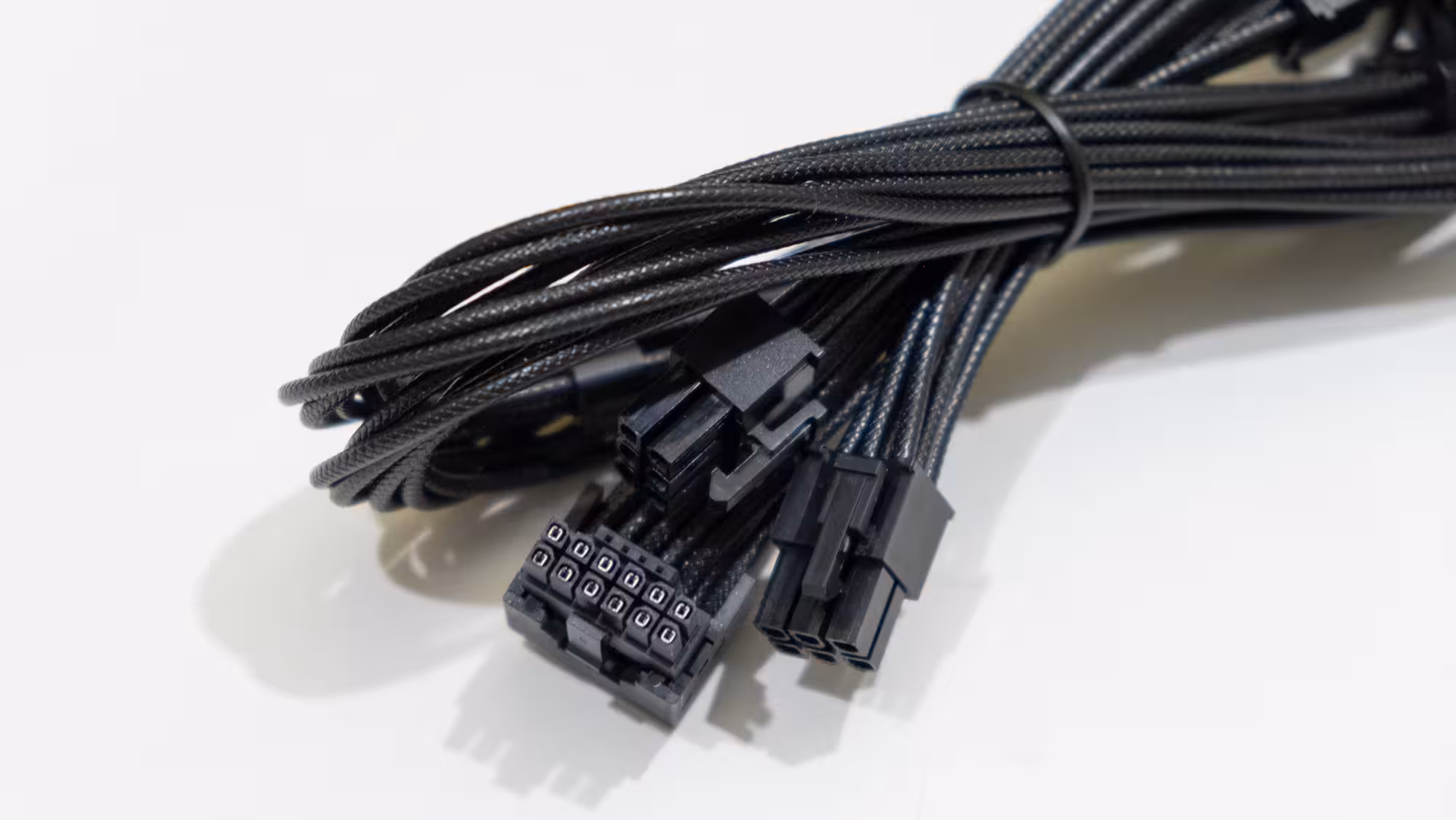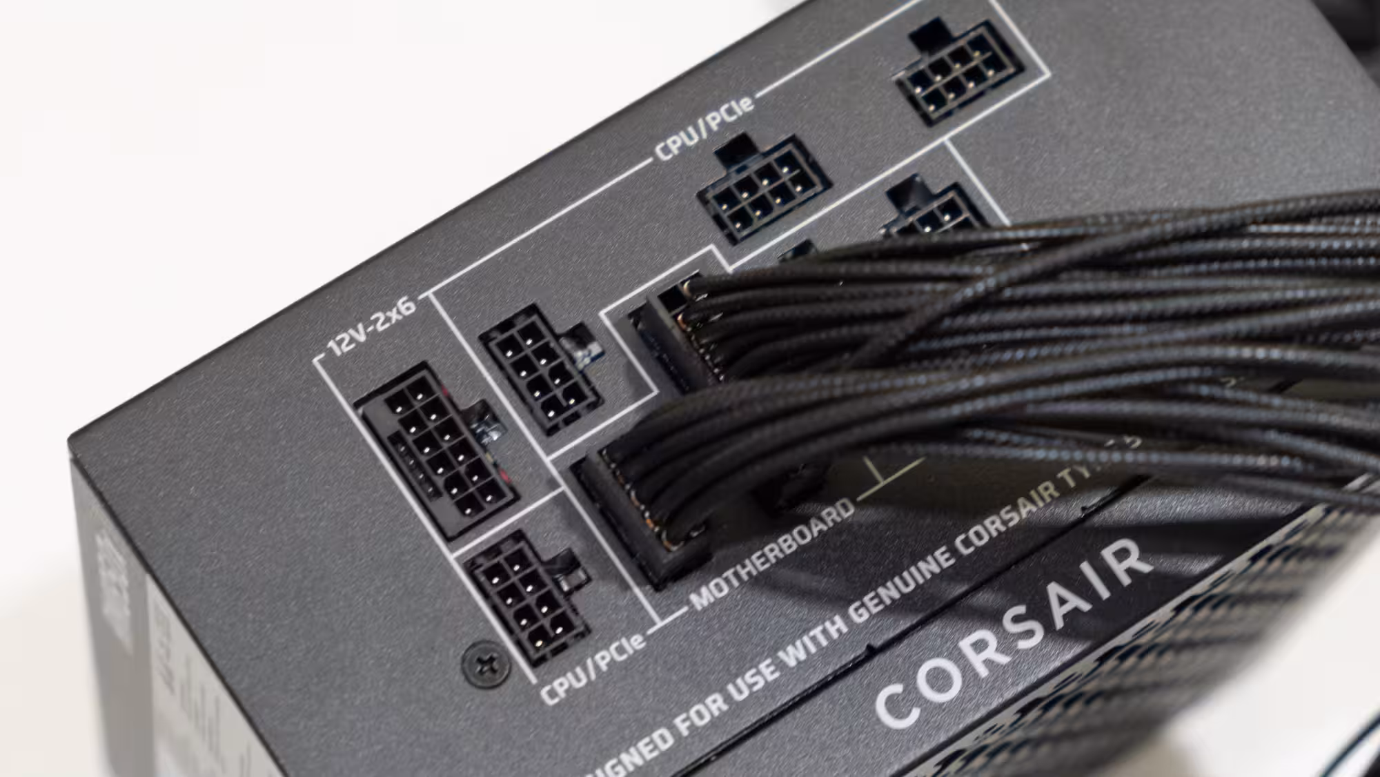 El cambio más significativo en esta ocasión, además de la mejora de los estándares y la reorganización de las tomas, es que ahora incluye un 12V-2x6 en la propia fuente. Corsair incluye dos cables con este conector, y ambos tienen un conector que sale en perpendicular, lo cual es útil. Luego los cables aportan dos PCIe de 6+2 pines o un 12V-2x6 con la punta en color gris claro en lugar de negro para ver que se haya insertado totalmente en la tarjeta gráfica.