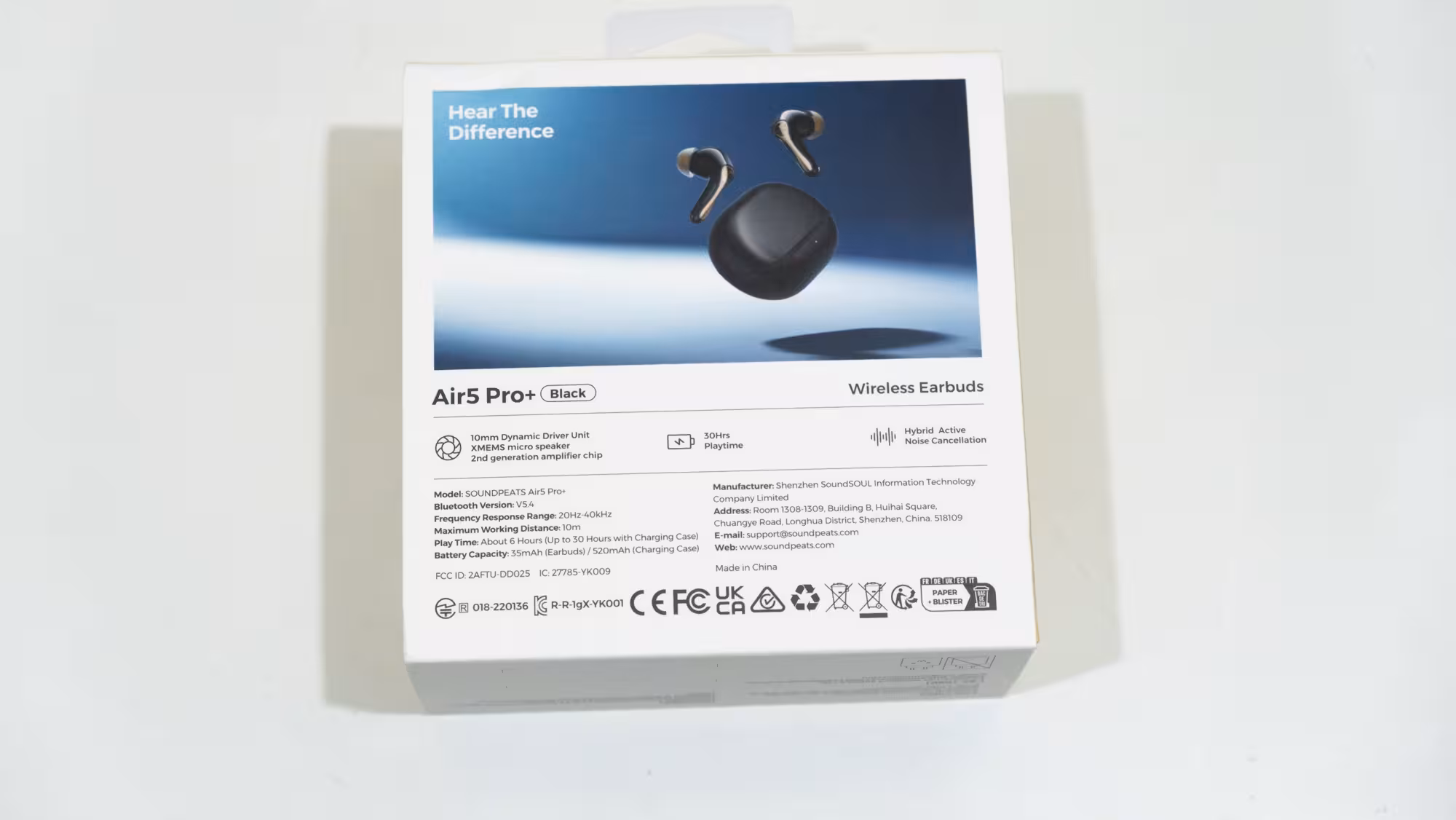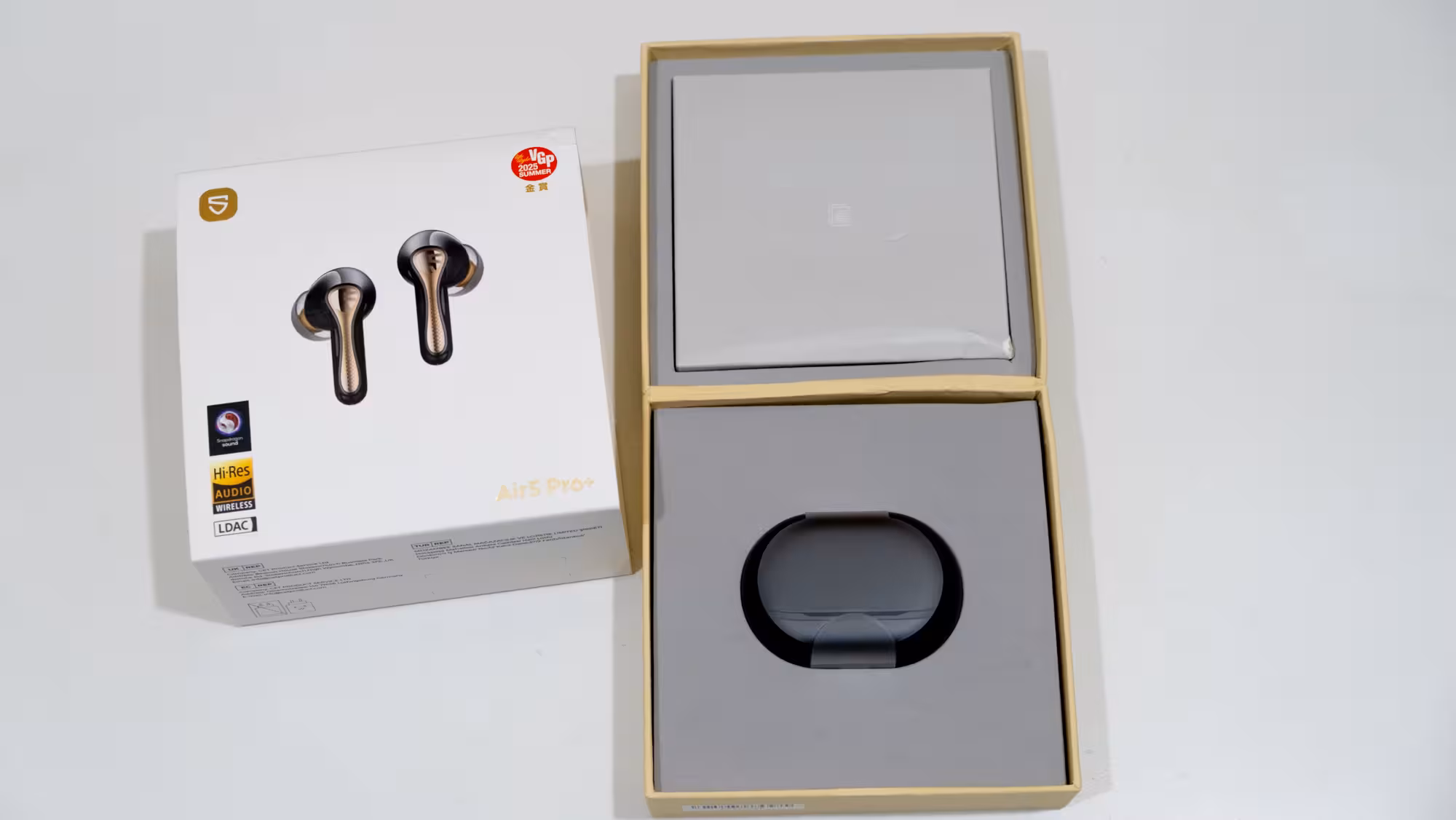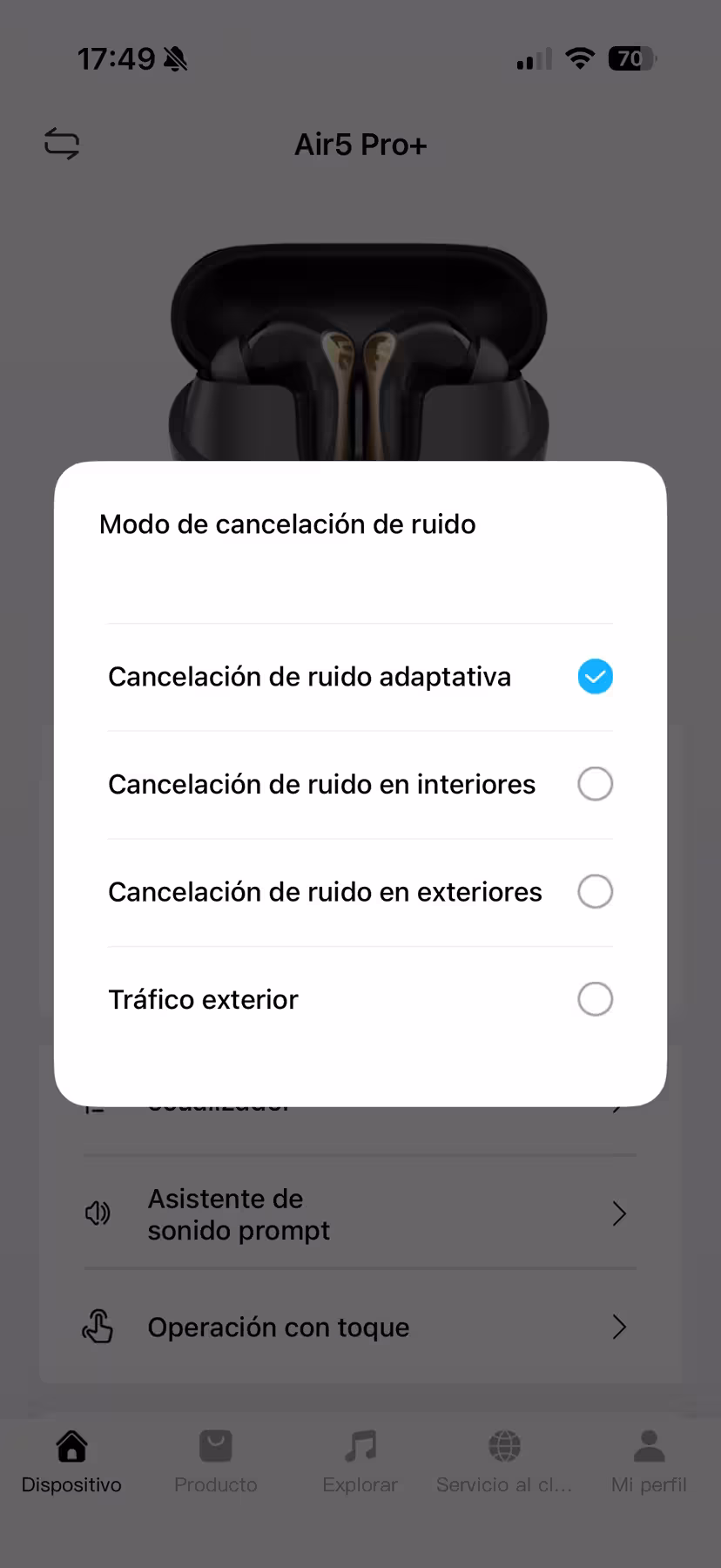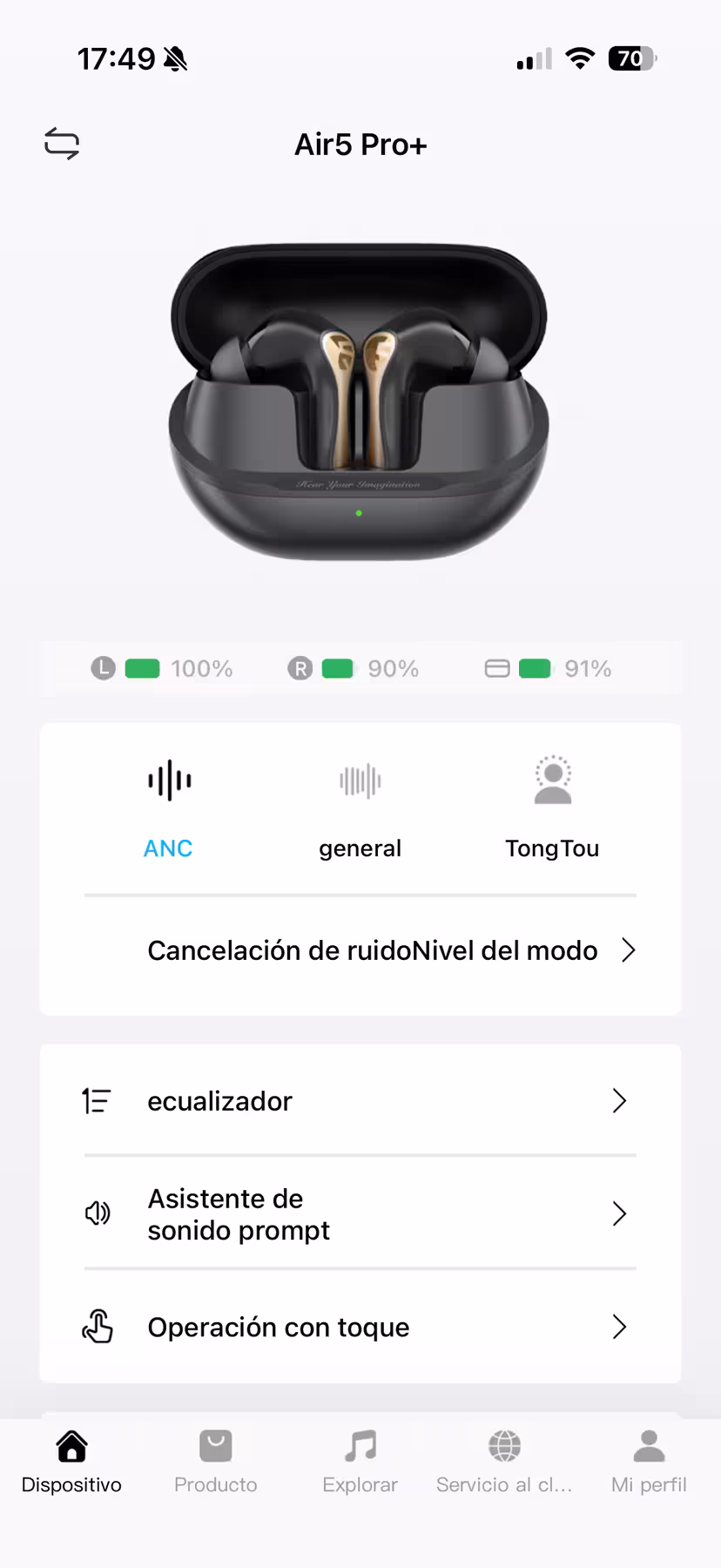 Los Air5 Pro+ incluyen unos transductores de 10 mm de buena calidad de tipo xMEMS —su principal novedad—, con la habitual respuesta en frecuencia entre los 20 Hz y 40 000 Hz. La conexión es Bluetooth 5.4, y puede reproducir en una amplia variedad de códecs: AAC, aptX, aptX adaptable, aptX sin pérdida, SBC, LC3 y LDAC. Es un apartado perfectamente cubierto gracias a su chip QCC3091 de Snapdragon, aunque también me ha dificultado probarlos por esa variedad.