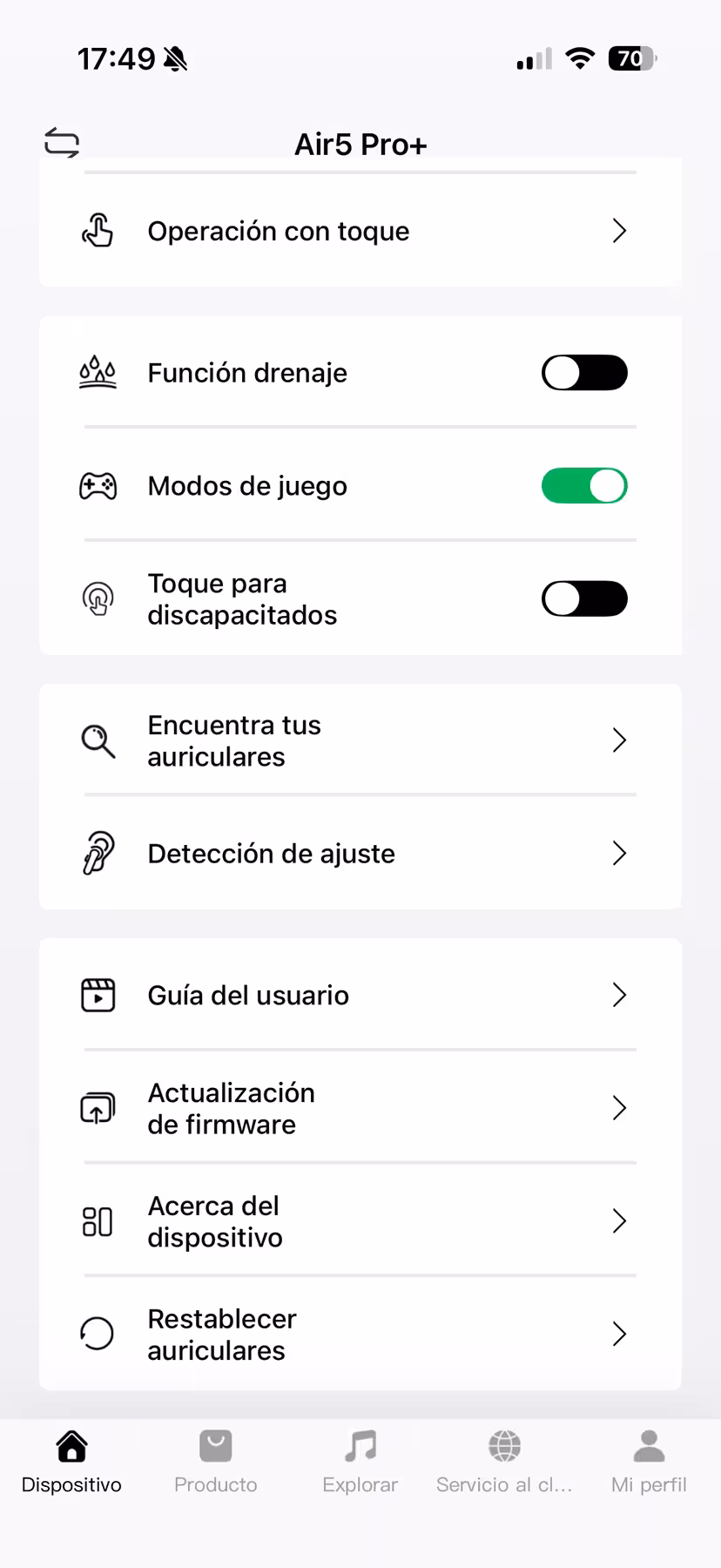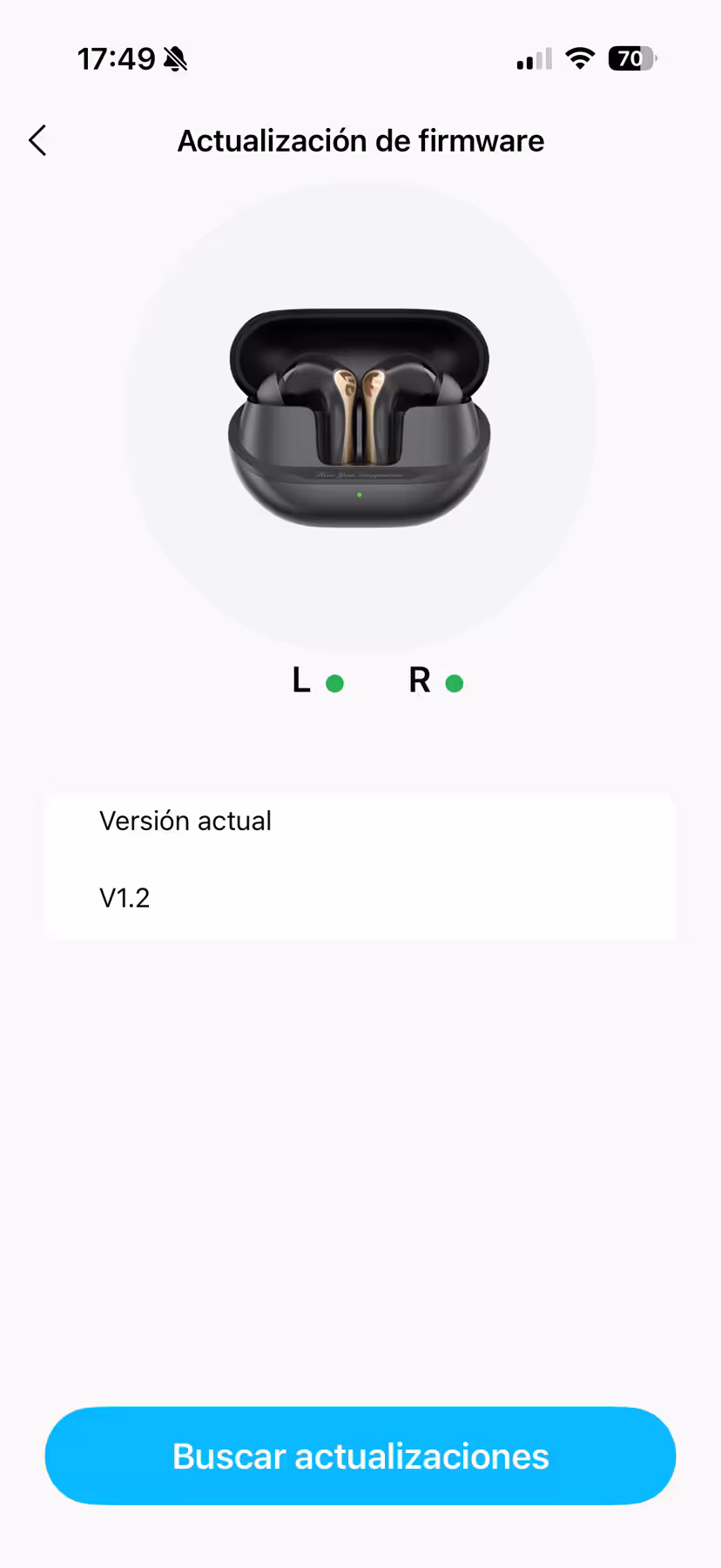 Dentro de las utilidades que se proporciona en la aplicación hay un localizador de los pinganillos. Se puede hacer que empiecen a emitir un sonido para encontrarlos, y se mostrará en un mapa la última ubicación en la que se usaran. Por último, es desde donde se actualiza el firmware de los auriculares, que en este caso no ha sido necesario porque llegaron con la última versión disponible en la fecha de hacer el análisis.