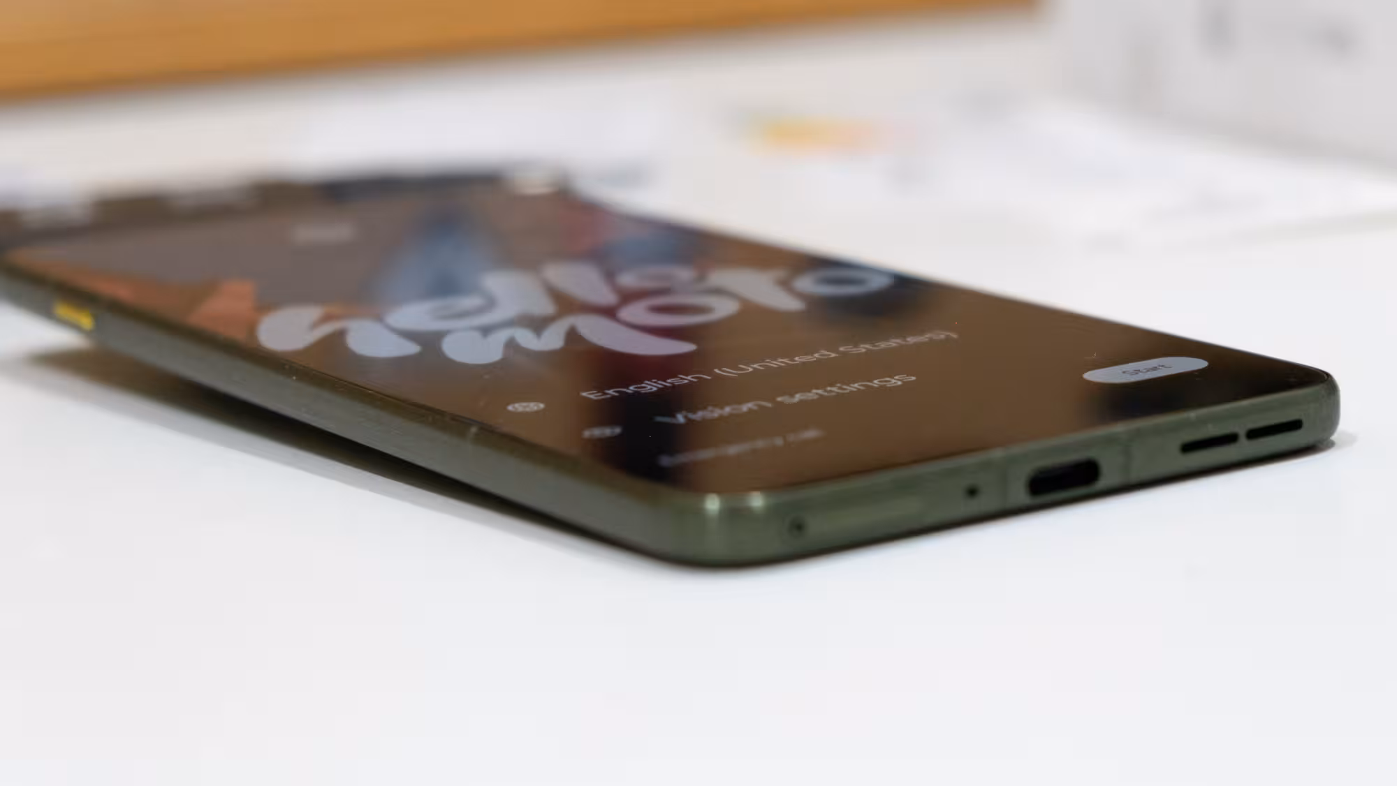 En el lateral derecho están los habituales botones de volumen e inicio, así como uno de los micrófonos. En el izquierdo hay un botón para activar Moto AI. En la parte inferior hay una toma USB-C para datos y recarga de hasta 68 W, uno de los altavoces, micrófono, y bandeja para una nano-SIM, aunque se puede provisionar con una eSIM. En la superoir hay otro micrófono. El móvil incluye Wi-Fi 6E, Bluetooth 5.4, NFC y 5G.