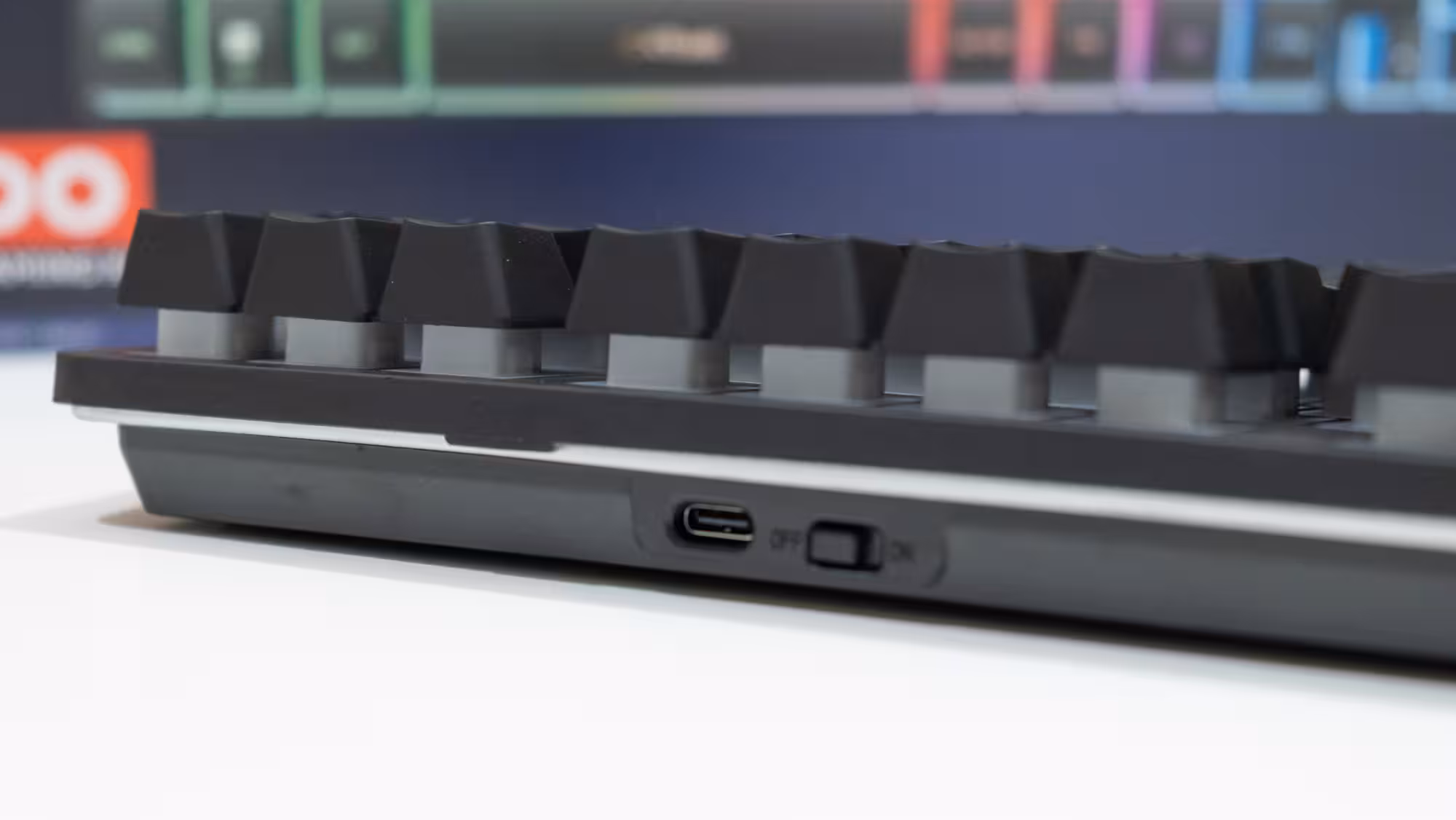 El teclado es de tipo compacto, con el bloque principal y el de los cursores. La hilera inferior de teclas especiales incluye teclas más alargadas de lo normal y con una cierta curvatura hacia abajo que al menos le da una estética distinta. Incluye tecla FN y otra para activar y desactivar la iluminación RGB configurable en cuatro zonas que incluye.