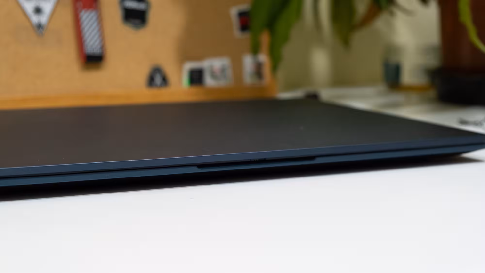 Sea como sea, el portátil está hecho en una carcasa de aluminio de color azul. Mide 355.5 mm × 249 mm × 16.3 mm y pesa solo 1.36 kg, aunque el modelo de 14 pulgadas pesa solo 1 kg, por lo que caen en el terreno de los ultraportátiles. Teniendo el coste del equipo, la calidad de fabricación, la rigidez, está bien aunque no es la mejor del mercado. No dará problemas, pero por ejemplo la zona del teclado se hunde más de lo habitual.