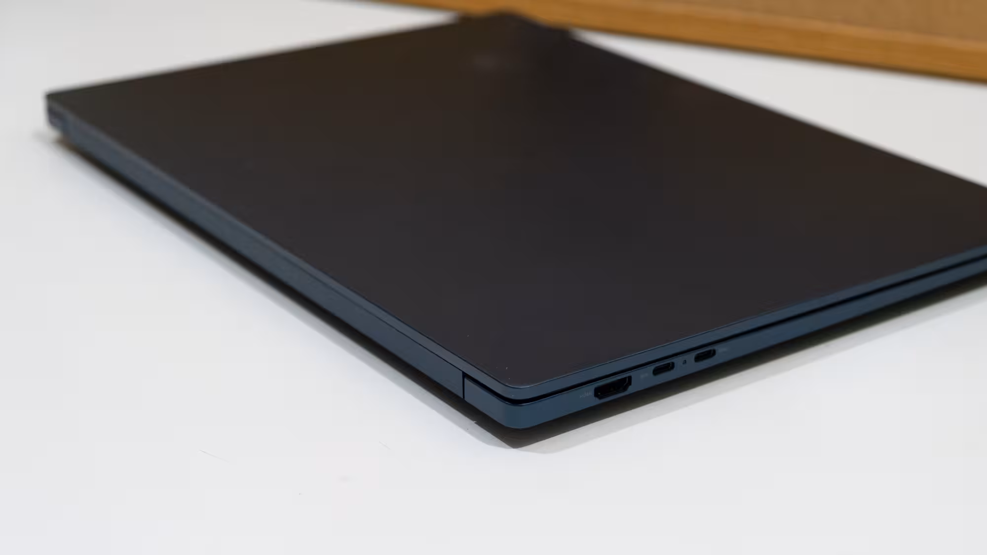 El consumo sostenido a largo plazo del procesador es de 28 W manteniéndose en los 3.4 GHz, por lo que está lejos de los 45 W habituales de este procesador. Los 16 GB de LPDDR5-6400 están soldados a la placa base.