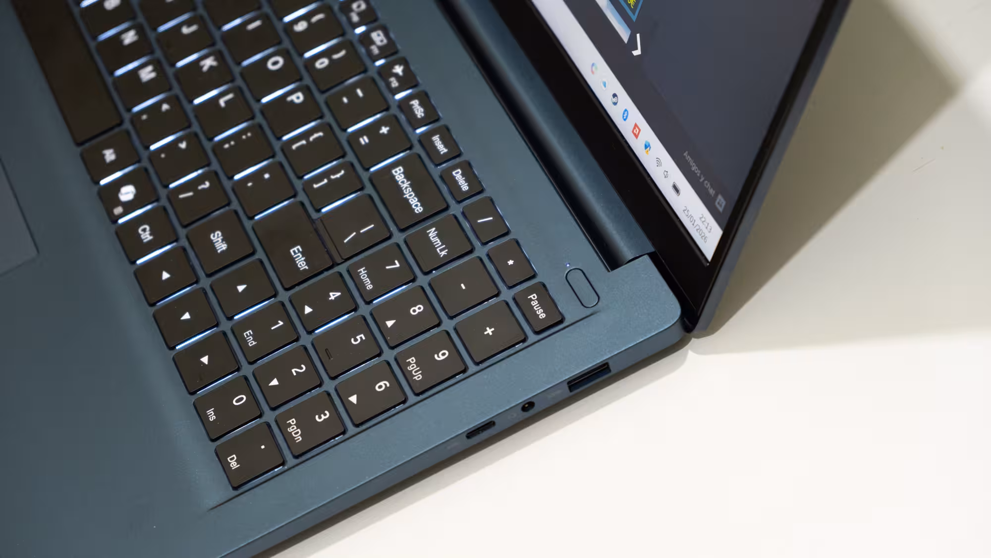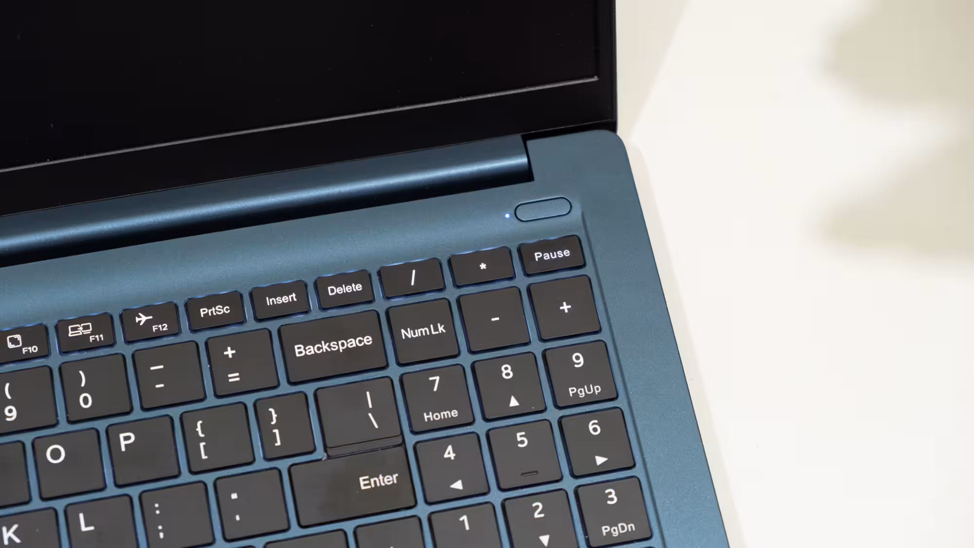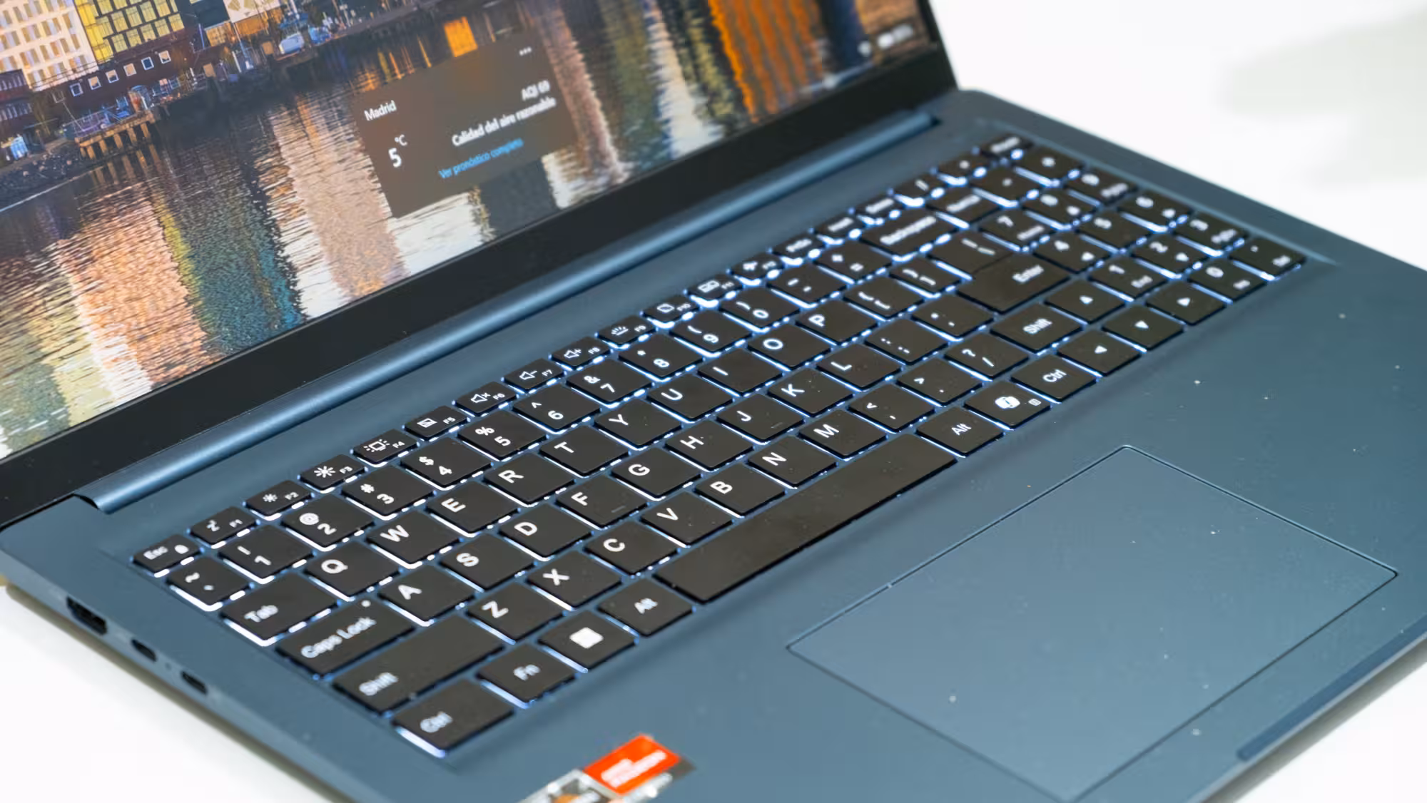 El teclado del portátil tiene la distribución ANSI como ocurre con todos los portátiles de CHUWI, lo cual suele ser algo que echa atrás a muchos potenciales compradores. La zona del teclado se hunde un poco más de lo que es normal para equipos similares, y da una sensación de tecleo un poco más rara de lo habitual. Pero me he acostumbrado rápido, y la retroiluminación es un plus. No le falta la tecla FN ni la de Copilot.