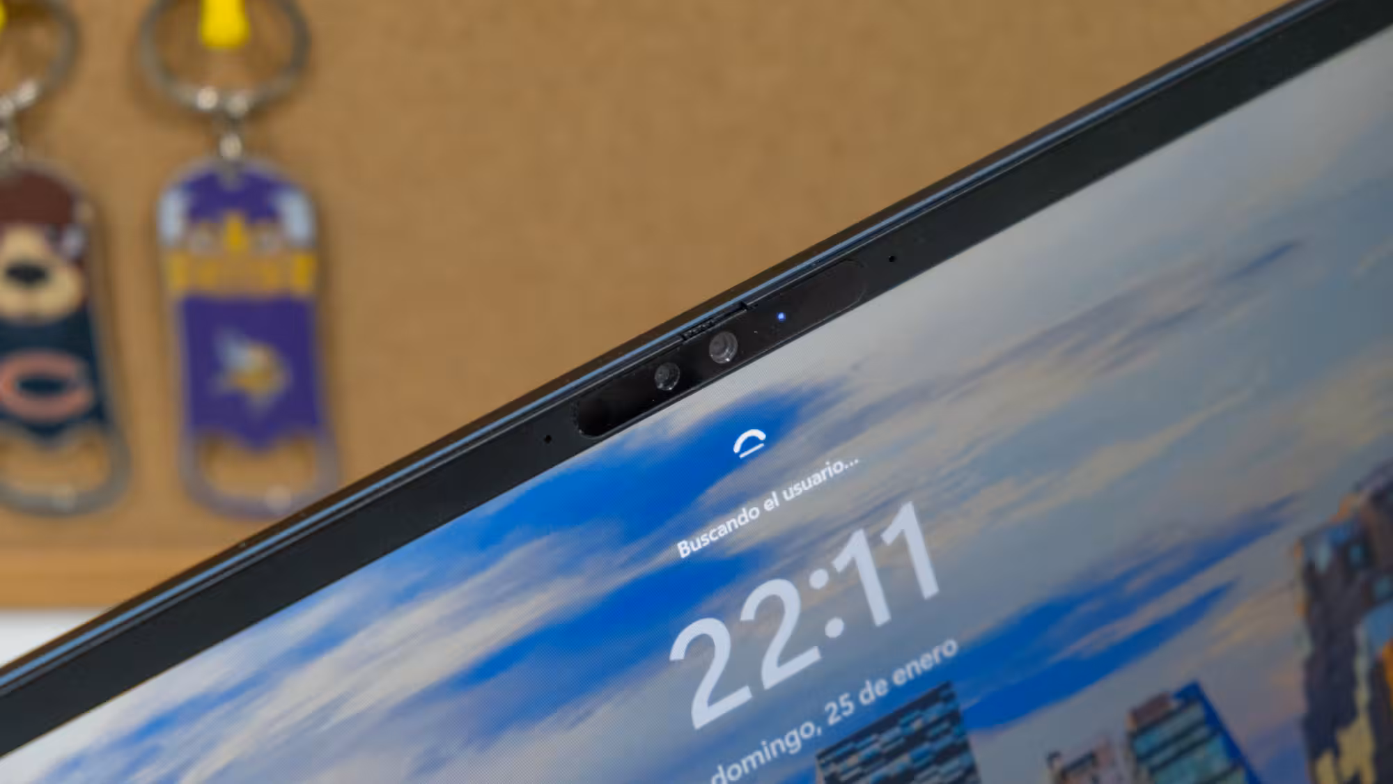 En cuanto al panel táctil, es mejor que los usados por la compañía en otros portátiles que he probado de ella. Es de pequeño tamaño, pero da una buena sensación de deslizamiento y es suficiente preciso. En la parte superior de la pantalla hay una cámara HD compatible con desbloqueo facial mediante Windows Hello. Como es habitual, llega con Windows 11 preinstalado.