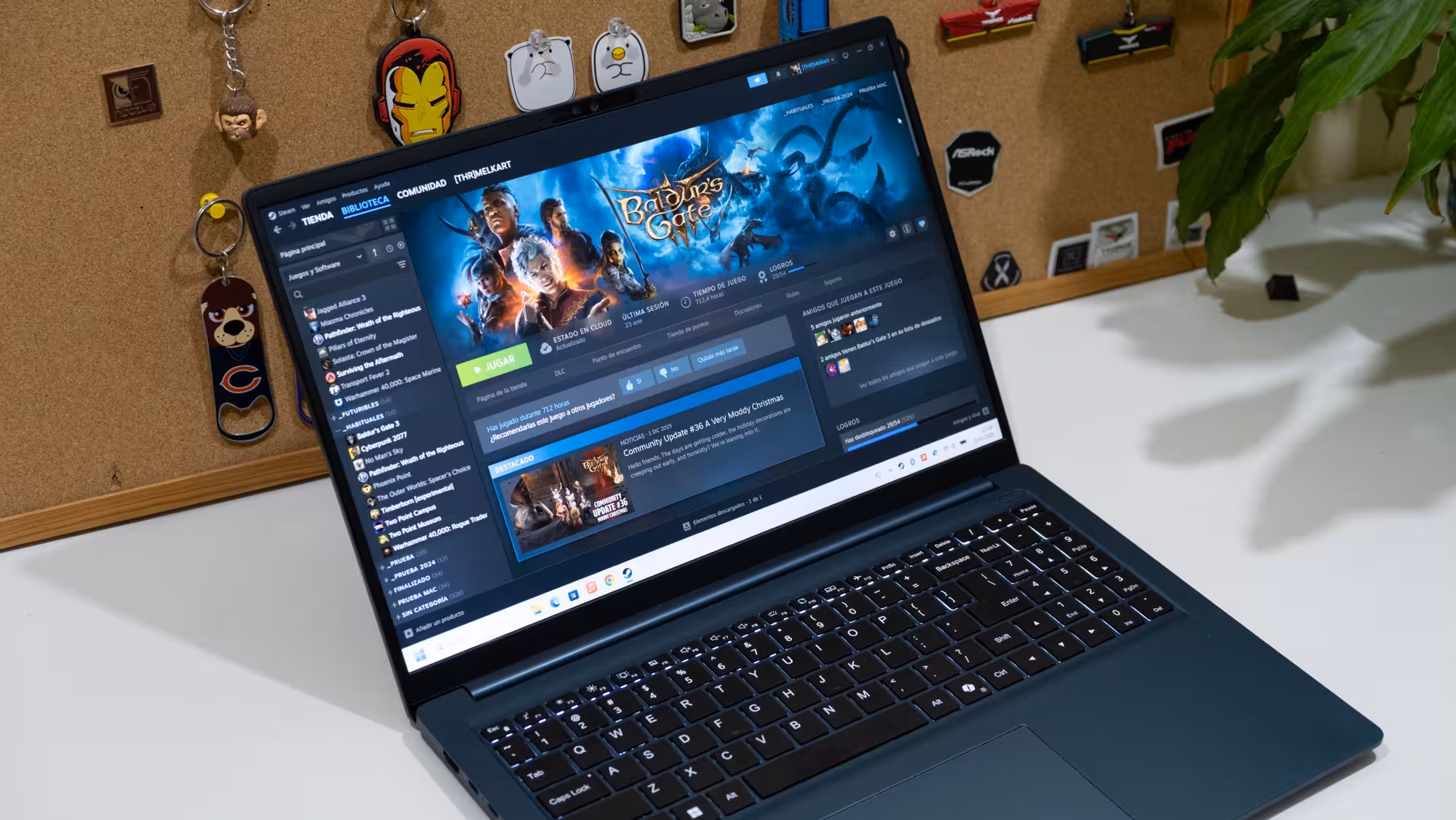 En cuanto a los puertos, en el lateral derecho hay un USB 3.0, un USB 2.0 tipo C, y la toma de audio de 3.5 mm. En el izquierdo hay un USB 3.0 tipo C y un USB 3.1 tipo C, ambos compatibles con vídeo, datos y carga de 65 W, así como un HDMI 2.0b que permite 4K y 144 Hz. También incluye Wi-Fi 6 y Bluetooth 5.2. La batería es de 60 Wh, lo cual le da una autonomía comedida.