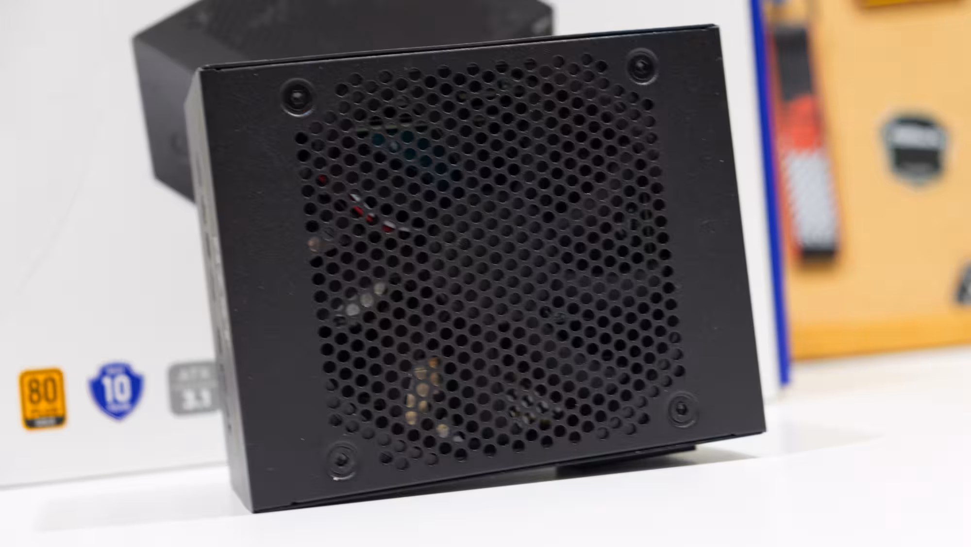En juegos, el equipo consume en torno a los 400 W a 450 W, según tenga la RTX 5070 o la RX 9070 XT, medido en el enchufe, que es más o menos la mitad de la potencia de la fuente. En ese escenario no hace ruido, aunque el resto de componentes pueden hacerlo. En un uso ofimático la fuente es inaudible, teniendo en cuenta la caja H2 Flow en la que he instalado la fuente tiene todos los paneles de rejilla, por lo que no amortigua nada el ruido —y tampoco permite que se concentre demasiado calor en su interior—.