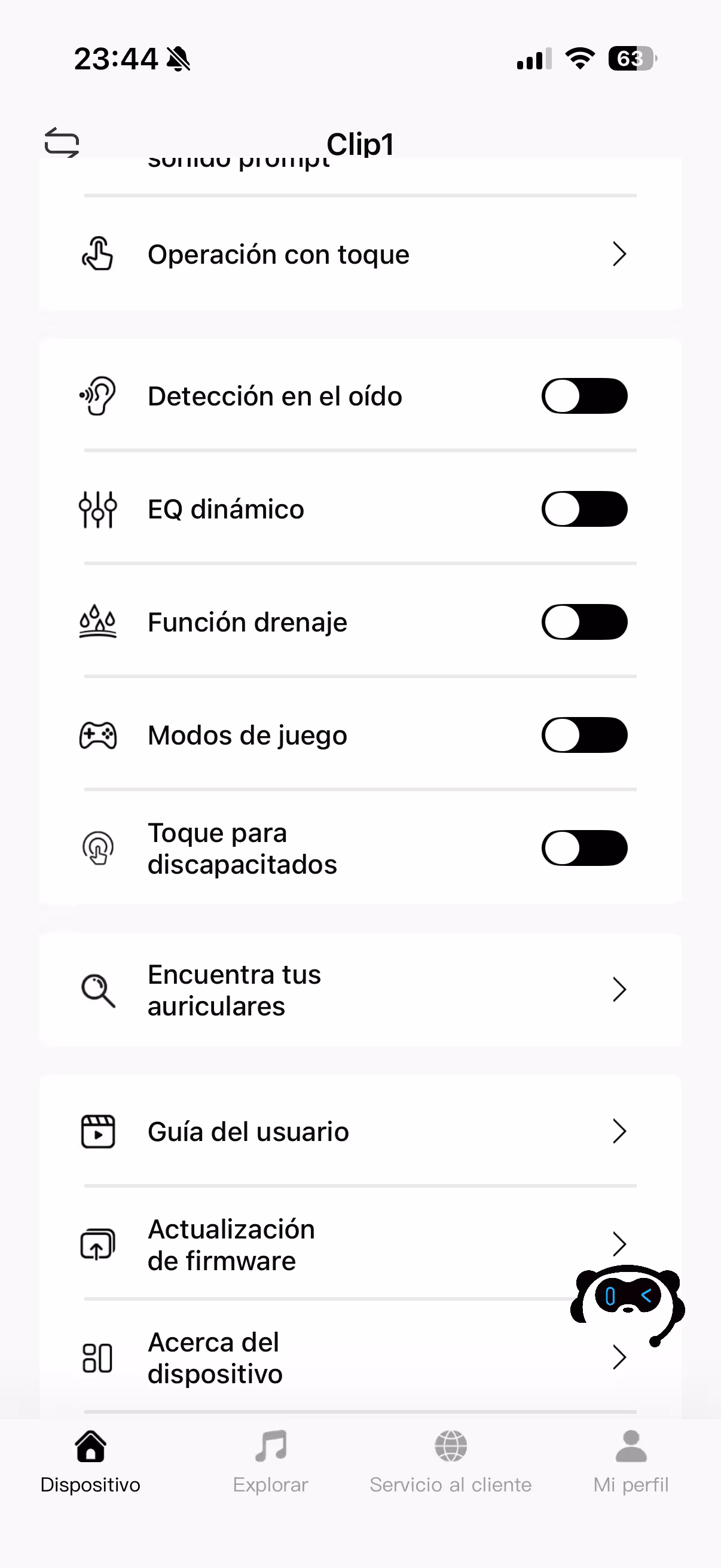 Dentro de las utilidades que se proporciona en la aplicación hay un localizador de los pinganillos. Se puede hacer que empiecen a emitir un sonido para encontrarlos, y se mostrará en un mapa la última ubicación en la que se usaran. Por último, es desde donde se actualiza el firmware de los auriculares, que en este caso he tenido que hacerlo antes de empzar a utilizarlos.